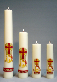 De nieuwe paaskaars krijgt een afbeelding van het Lam Gods.