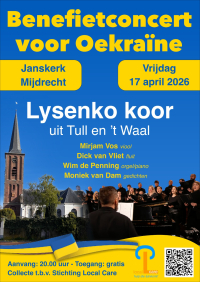 Vrijdagavond 17 april is er een benefietconcert in de Janskerk.